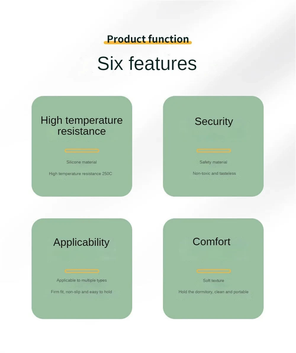 1. Material de silicone, isolamento térmico, anti-escaldão, tranquilidade e durabilidade